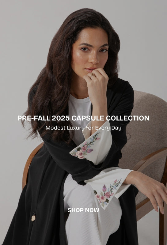 This capsule merges practicality with refined modest luxury through flowing wide-cut abayas designed to give the modern woman an elegant and distinctive presence a balance of timeless simplicity and exquisite craftsmanship. Inspired by a classic palette, the collection highlights the eternal charm of black, the regal depth of green, and the sophistication of deep navy, offering versatile choices for today’s woman.