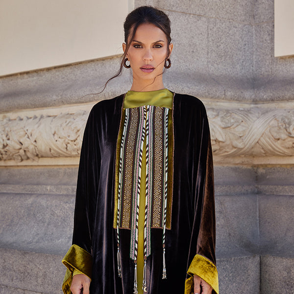 In the realm of luxury, where opulence and elegance seamlessly intertwine, Moonlight Concept Fashion House proudly unveils its 2023-2024 fall and winter collection: Velvet Sonata. This collection is a testament to the artistry of fashion, where abayas transcend mere garments to become exquisite statements of opulence. Each design within this collection is more than attire; it is a meticulously crafted masterpiece, fashioned from the finest velvet and silk.