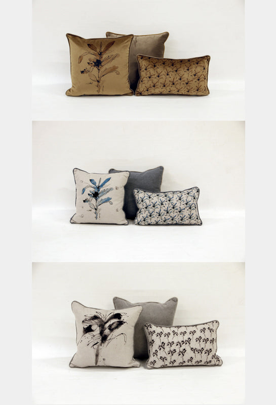 تمثل مجموعة وسائد قرية الشعراء تشكيلة منتقاة بعناية تتكون من ثلاث وسائد فاخرة صنعت من قبل شركة فروم، مستوحاة من الأعمال الفنية للفنان علي حسن بأنماط شجر النخيل التجريدية. كل وسادة في هذه المجموعة تعكس الغنى الثقافي وروح الإبداع الذي يميز المجموعة. هذه الوسائد مصنوعة من المخمل والشانيه الفاخر وتجمع بين الراحة والفن المستوحى من التراث، مما يضفي لمسة من السحر الثقافي والفخامة الراقية على أي مساحة. تأتي المجموعة بثلاث وسائد بأحجام مختلفة، لتوفر مرونة في التصميم والديكور.