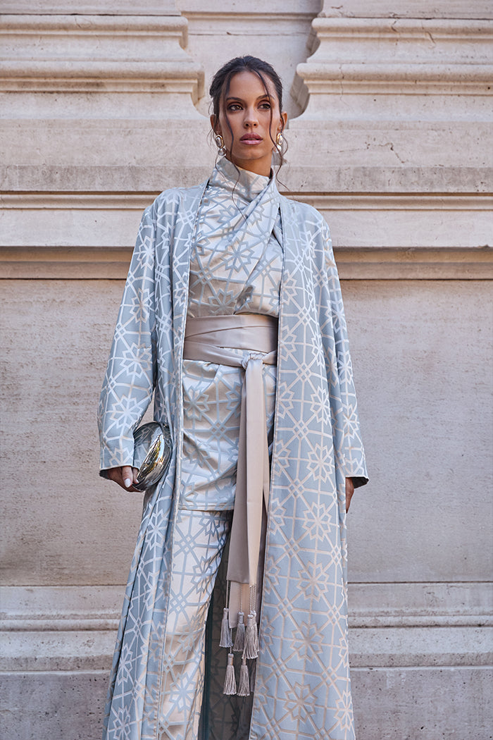 From this timeless spirit, the House has crafted designs that reimagine winter luxury, infusing the essence of Arab identity into a refined modern silhouette that celebrates today’s woman, poised, confident, and effortlessly elegant.